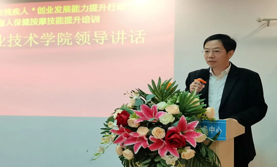 开班仪式结束后,校团委创新创业教研室胡秋歌副主任紧接着为残疾人朋友现场讲授了一堂精彩的保健按摩师职业素养赋能课,她的精彩演讲妙语如珠获得了现场热烈的掌声。