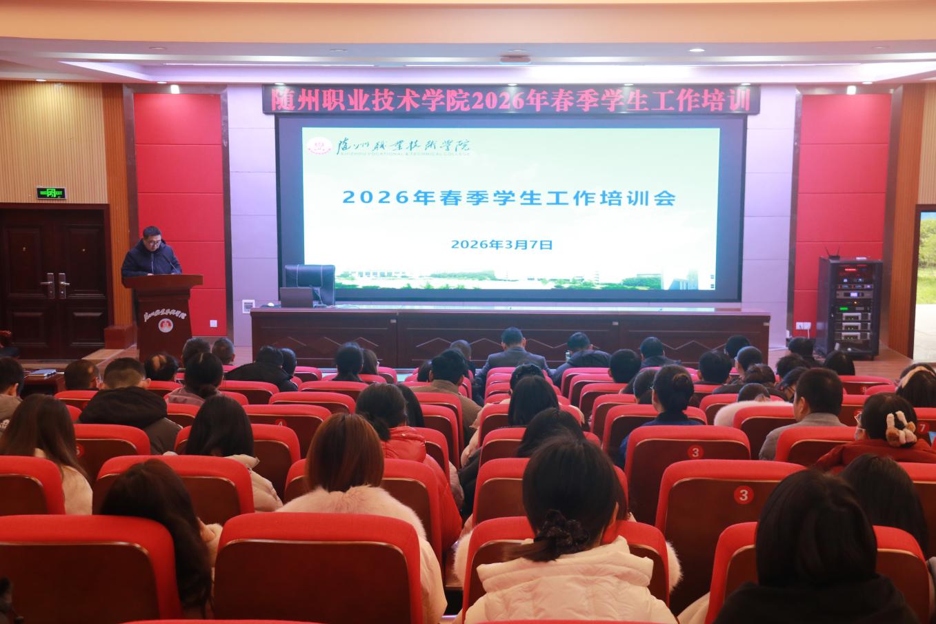为全面提升学生工作队伍的专业素养与业务能力,推动学生工作高质量发展,3月7日上午,我校在学术报告厅召开2026年春季学生工作培训会。学生工作处、团委、保卫处全体工作人员及全体专兼职辅导员参加会议。
