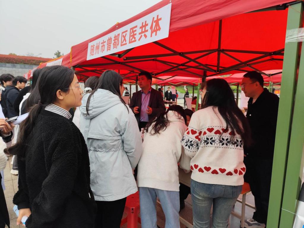 针我校医学类毕业生需求,招聘会精准对接了随州市本地及周边地区的多家医疗卫生机构,包括医院、老年护理院、医疗美容机构以及医疗器械公司等相关单位,为护理、康复治疗技术、口腔医学技术、临床医学等专业毕业生提供了大量对口岗位。许多同学带着精心准备的简历,在各展位前驻足咨询,详细了解岗位要求、薪资待遇和职业发展路径。